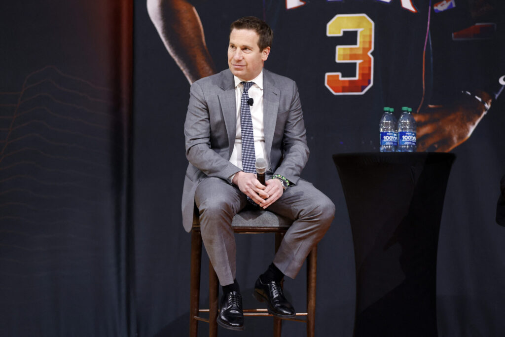 PHOENIX, ARIZONA - FEBRUARY 16: Owner Mat Ishbia of the Phoenix Suns answers questions from the media during a press conference introducing Kevin Durant at Footprint Center on February 16, 2023 in Phoenix, Arizona. NOTE TO USER: User expressly acknowledges and agrees that, by downloading and/or using this photograph, User is consenting to the terms and conditions of the Getty Images License Agreement. Chris Coduto/Getty Images/AFP (Photo by Chris Coduto / GETTY IMAGES NORTH AMERICA / Getty Images via AFP)